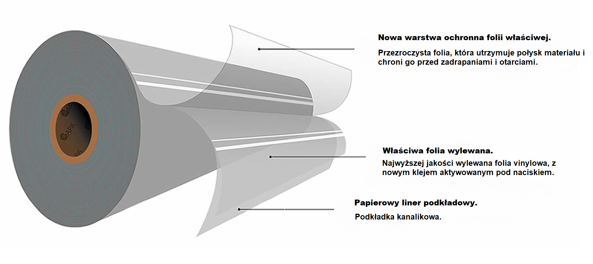 - Rodzaj folii: Wylewana folia winylowa z technologią kanalikową FTX Air Free System